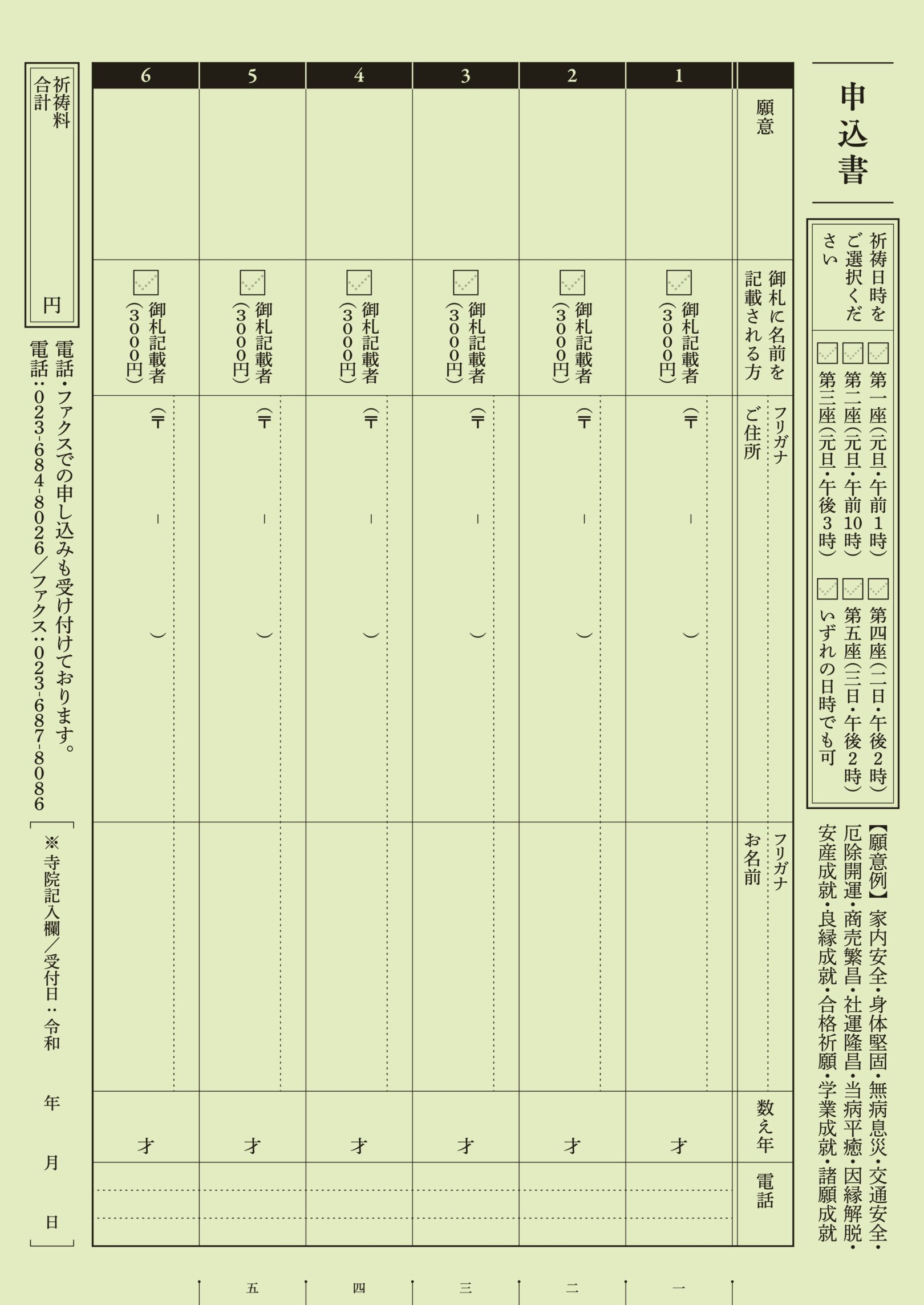 ご祈祷・お札の申込みは下記の用紙を参照下さい。寺院で直接の受付も承っています。