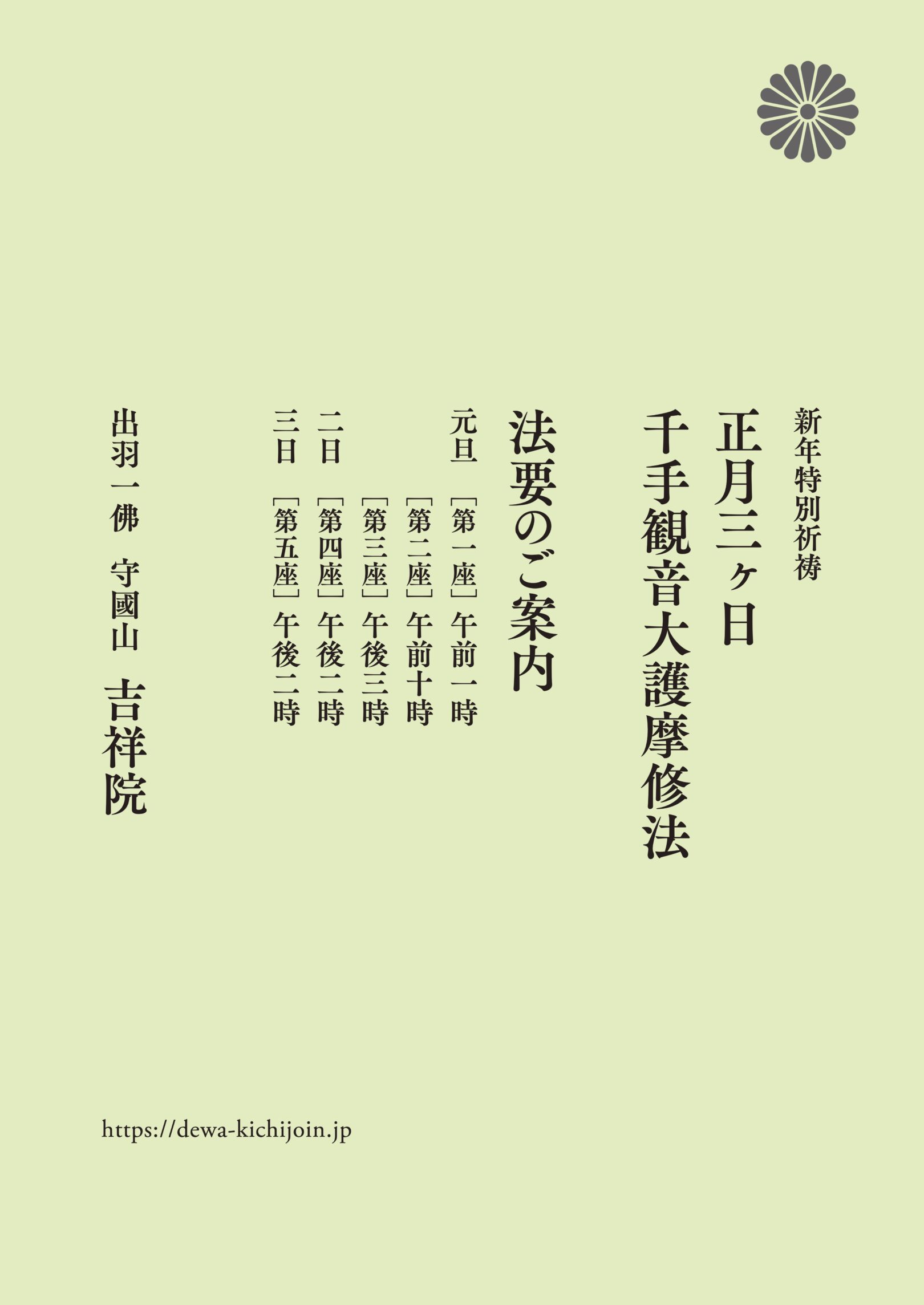 新しい年が皆様にとりまして、諸願円満・大願成就の一年となりますよう、修法をもって祈念申し上げます。